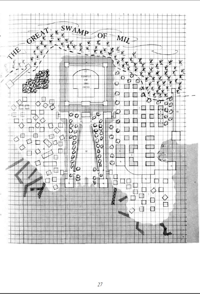 Where this supplement brings something new is in the first example of a setting and dungeon setup with a little plot to go with it. It’s not fully developed, but The Temple of the Frog, with its location maps, descriptions of history and creatures of the place and detailed description of the temple’s rooms and dungeon as well as the surrounding city, and with the description of NPC relationships and temple social structure does feel like a small campaign setting. It says nothing about Blackmoor castle though, despite the title. It’s all about a weird swamp temple with a Frog god, killer frogs and an alien high priest who has a spaceship and everything. At least it’s imaginative and fun! Read it mainly for the first setting in the history of D&D, which makes it a more entertaining read than the comparatively dry manuals and supplements that came before.