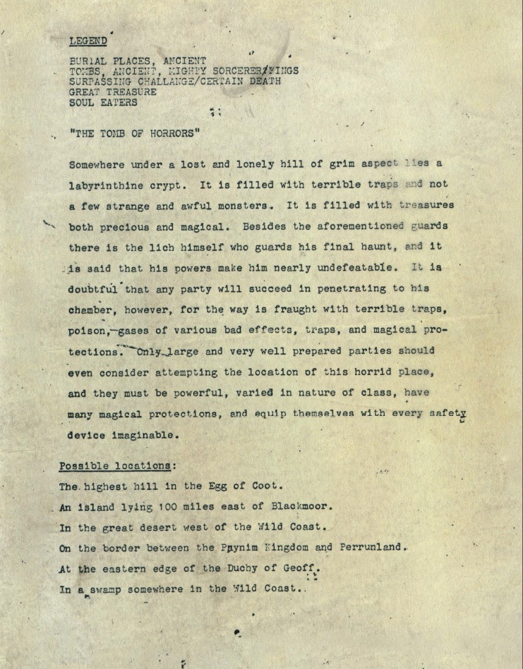 One of the earliest documented adventure modules for D&D and an all time classic that would go through iterations throughout the whole history of D&D up until fifth edition, where it was republished in the anthology Tales from the Yawning Portal in 2017, Tomb of Horrors was originally a tournament adventure.