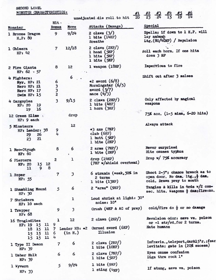 There is a description of a general plot involving Iggwilv, an archmage in the Greyhawk setting, but this is a module constructed for tournament play and that is part of what makes it interesting. The game’s dungeon is split into two levels and when a party finishes the first level only one of the player characters moves on to the next level. So, of the six pre-constructed characters only one, who the DM decided was the best player, based on criteria that this module explains, moves on to the next level, together with all the best players from the other groups that played the first level.