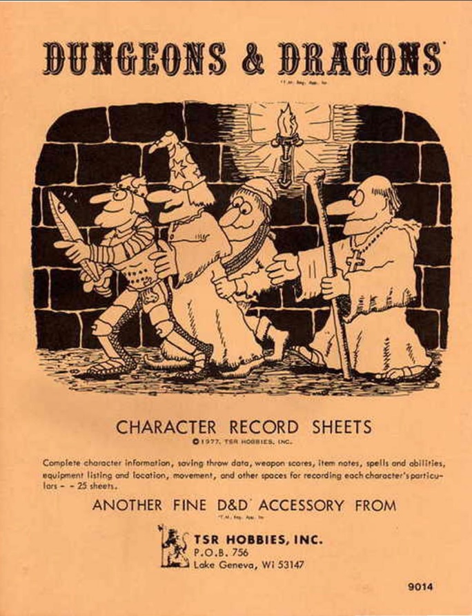 Not being the first commercially available Character Sheets, those were done in 1975 by Wee Warriors for D&D and were called The Character Archaic, and it’s easy to find images of them online, these are the first official TSR produced and designed sheets.