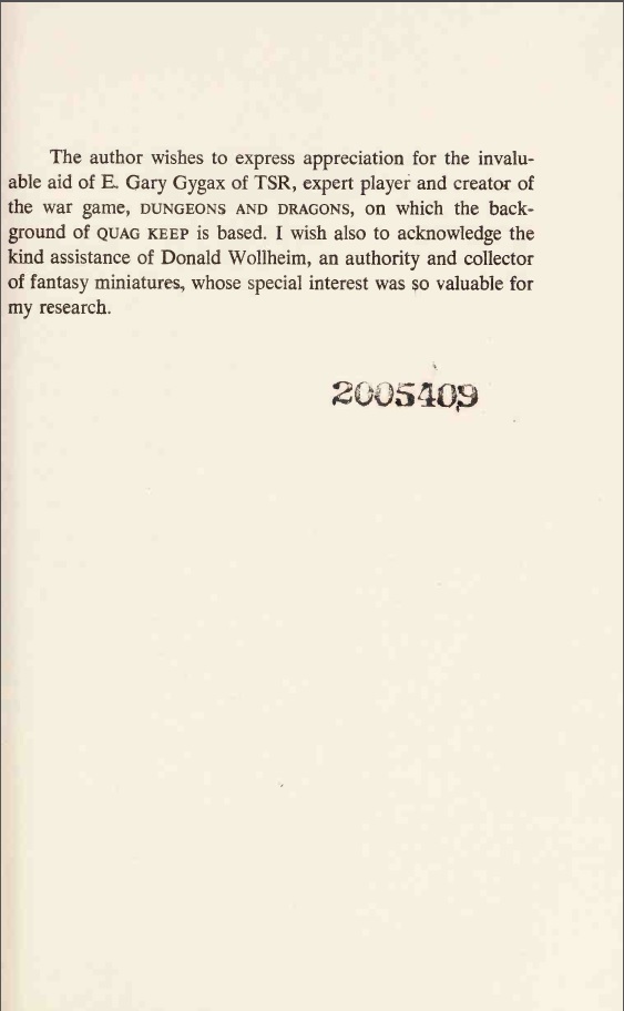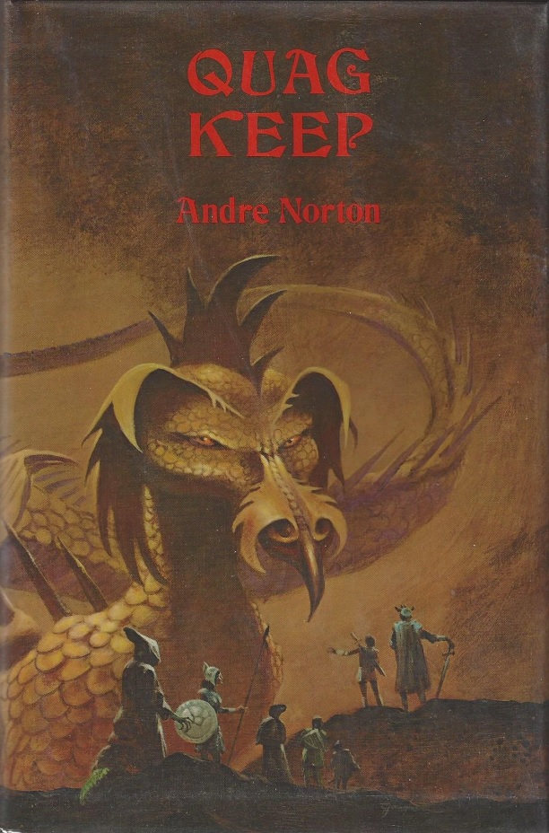 Before that happened we would still have fiction in the shape of the Endless Adventure gamebooks which would appear in the early 80s and before all of that, this book. Quag Keep by Andre Norton (real name Alice Mary Norton) is set in the Greyhawk setting, and it starts off in the city of Greyhawk as adventurers come together to understand what the hell is happening to them. They are all suffering from a sort of amnesia and glimpses of another world (out world), they also have these kinds of charm bracelets with polyhedral dice… what is going on?