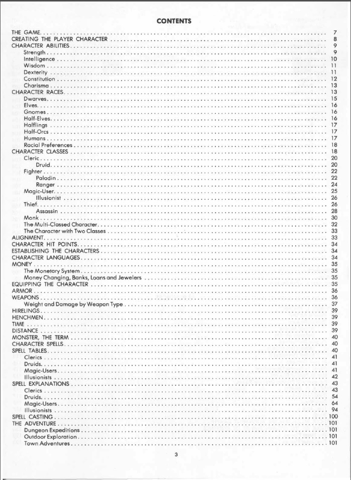 For the modern reader this is a much more recognizable system than what was in the original D&D or even the basic set, overly complicated and with some nitpicky rules particularly when it comes to turn order and attack/casting speeds, it is however very much D&D as we know it, particularly if you played it at any time before 4th edition (I started in 2nd myself, for example). Much of the book is taken up by spell lists and rules, and that’s something that still happens, but if you are at all interested in seeing where D&D comes from, it’s definitely worth a read.