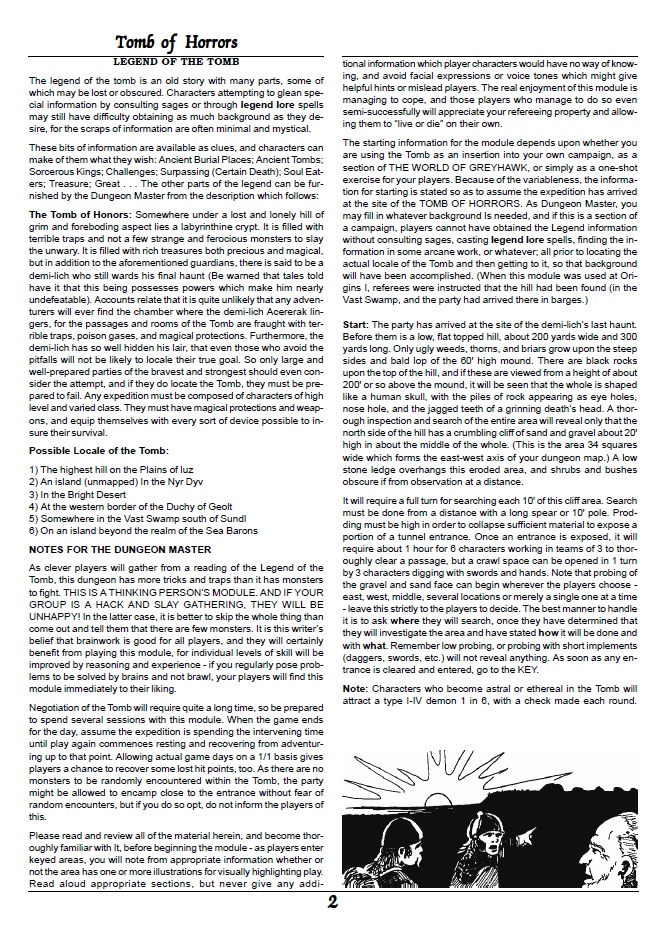 I would honestly suggest that if your players aren’t your nemeses, and/or you do not wish to lose the few friends you have, you should run this with characters created specifically for this dungeon, it can be a fun run but the permadeath that will invariably be the fate of some of the PCs won’t feel as harsh. Another option would be to tone this down, but that would be defeating the purpose of the dungeon, this is a test, for a test to be effective the real chance of failure with real consequences has to be present, this is also supposed to be horror, the characters should be afraid of dying and that is only enhanced by seeing their friends die before them. A truly evil dungeon, Acererak didn’t want to make his tomb an amusement park, he wanted to fucking kill anyone who came in.