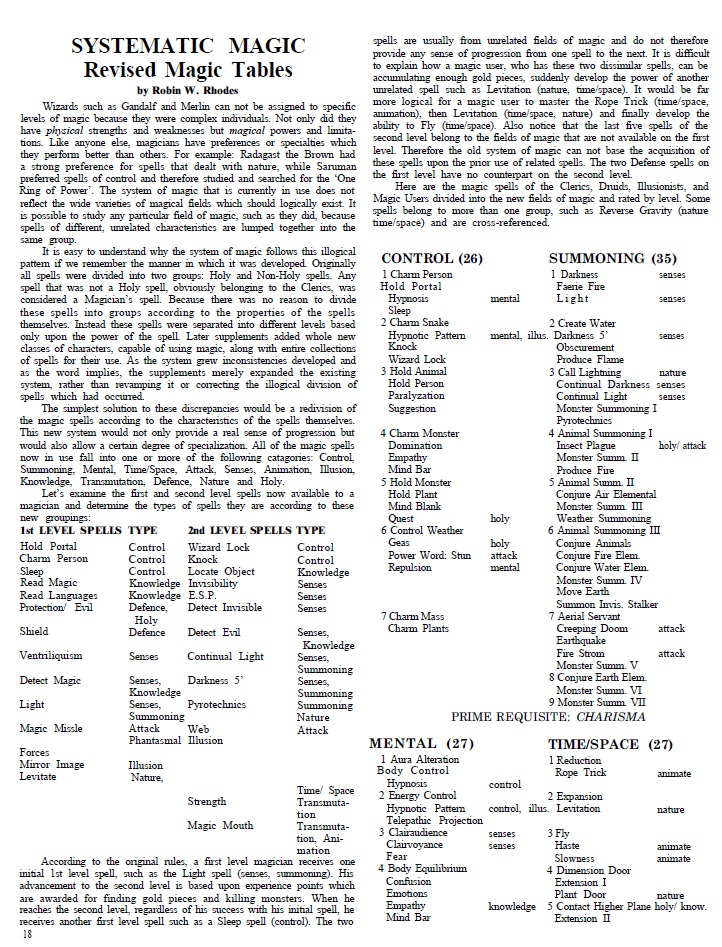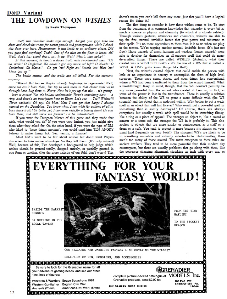 Other articles include one on how to use Wish spells, making more creative treasure hoards, the Mythos of Australia and we get another article about segregating magic into schools, which would later become a thing, with different names and a different system, but the idea has been floating around for a while.