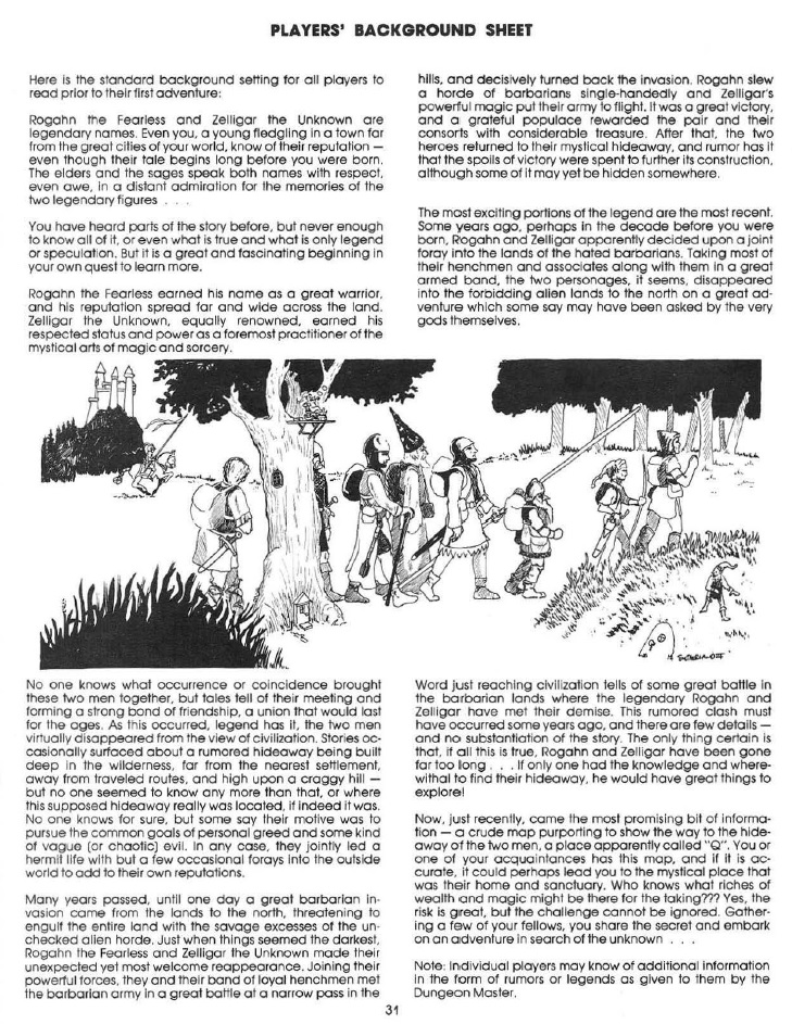 As the story goes it’s very barebones, a couple of adventurers, a warrior and a magic user, built a keep which has now been abandoned as they are presumed dead. The players hear about this and decide to explore. That’s it. Curiously though, the disappeared adventurers are repeatedly described as evil, but they seem like a couple of ok guys, you find loads of like “Employee of the Week” artefacts in the dungeon and even a funny “suggestions on how to improve the keep” report by their right hand man… they just seem like they run a nice workplace… I dunno.
