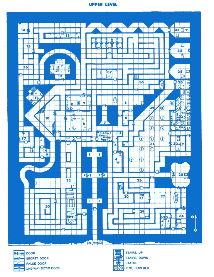 The first of the TSR produced adventure modules not written by Gygax, this was bundled with the basic D&D box from the fourth printing until 1980 when it was replaced by Keep on the Borderlands (B2). So for a short while, mainly in 1979, this was what you would get in the basic set. I think you could also buy it separately, but I’m not sure about that. Anyway, it was a common module around that time, and although it’s made for Basic D&D, it has instructions to adapt it to AD&D, which is really not that different at the early levels that this adventure is made for.