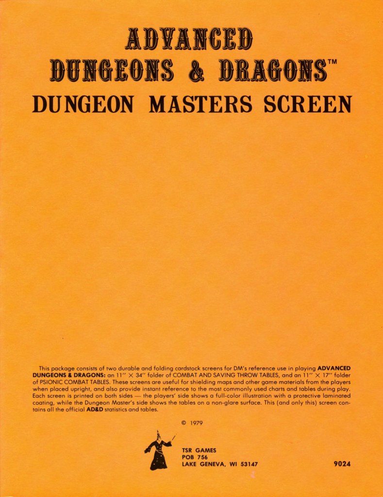 At about the same time we got the Dungeon Masters Guide, we also got the Dungeon Masters Screen, in fact during the year of 1979 we got two editions of the Screen, the first one with just an orange cover with the title but no art and soon after another with an Erol Otus knight and dragon drawing on the cover.