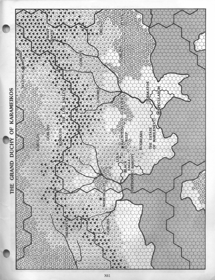 As was to be expected this volume of the rules gives details of changes to characters in the 10 levels that it covers, but it also gives us a list of level appropriate monsters, loot, magical items and spells that were not present in the Basic Rules. Another longlasting first in this rule set is the first inkling of the world of Mystara, the sample dungeon at the end of the rules being set in that world with the X1 module bundled also being set in Mystara. This was because Gygax wanted to make Greyhawk exclusive to AD&D, so D&D adopted Lawrence Schick and Tom Moldvay’s home campaign setting, a setting which would be the default for D&D over the 80s and into the 90s.