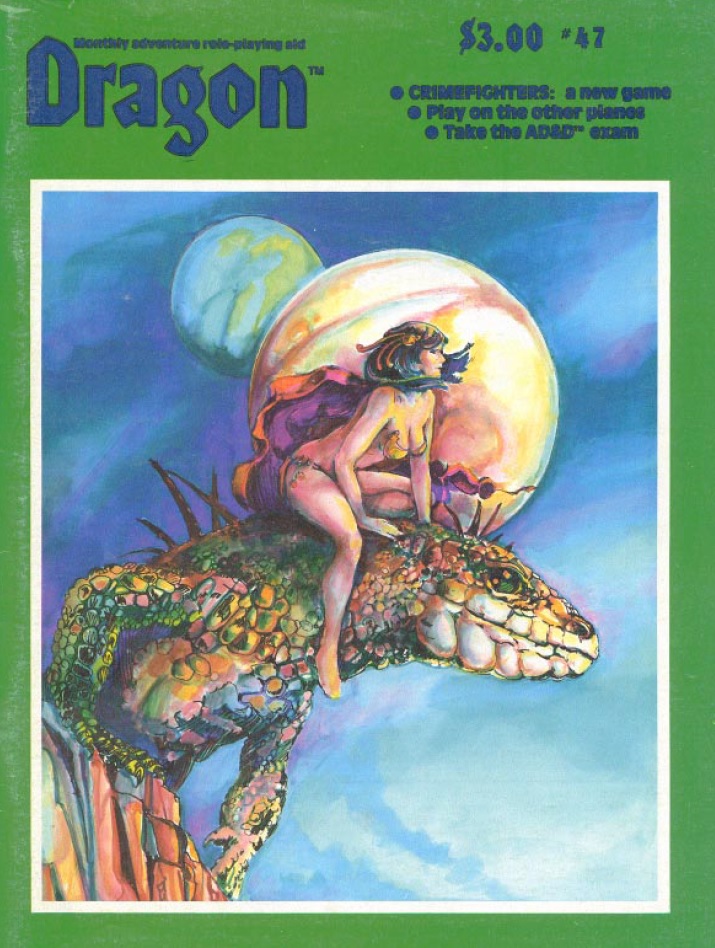 This is an exciting issue of Dragon! So, we’ve known for a while that Ed Greenwood has been on staff for Dragon magazine, at the moment he is a Contributing Editor to the magazine, and has been since the start of 1981, before this he had contributed plenty of Bestiary and Bazaar of the Bizarre entries, and people who know the Forgotten Realms might have recognized stuff in those entries. However, as far as I know this is the first time that details about the campaign world show up in print in official TSR material and actually named as The Forgotten Realms.