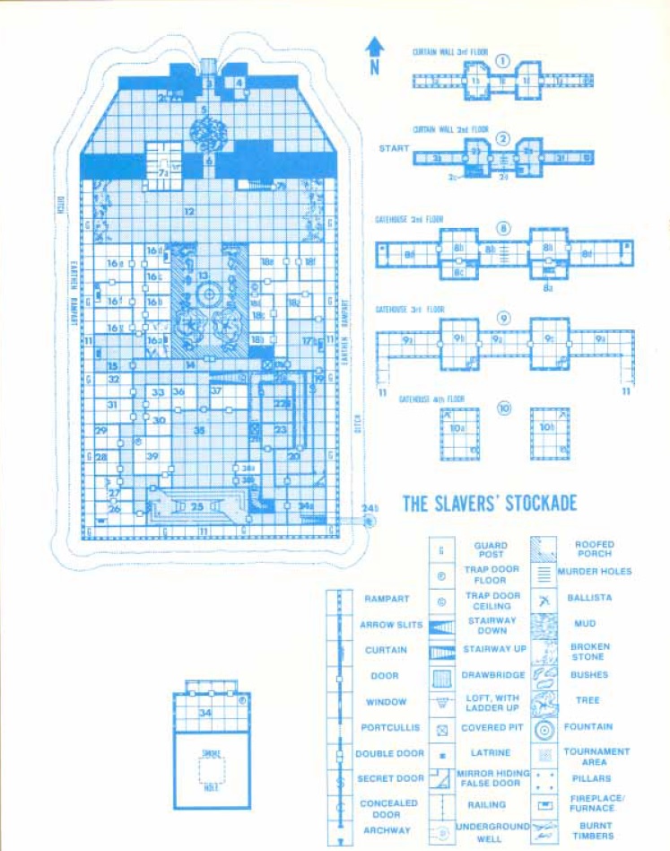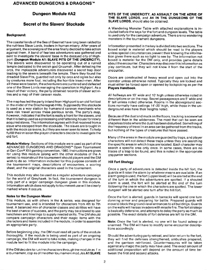 The adventure starts off (if you are playing the home game rather than a tournament) where A1 ends, with you getting info on another Slaver stronghold and travelling there. Of course you could just get the info on the stronghold in A3 and skip this entirely. However, this is a pretty good adventure and worth the wait. It’s denser than other modules in the series, stretching to 40 pages with very little in terms of illustration, but it is also populated with a bunch of interesting side-characters and villains. Certainly much better in this respect than A1 was, there’s a lot more plot and cool NPCs to fight or ally with.