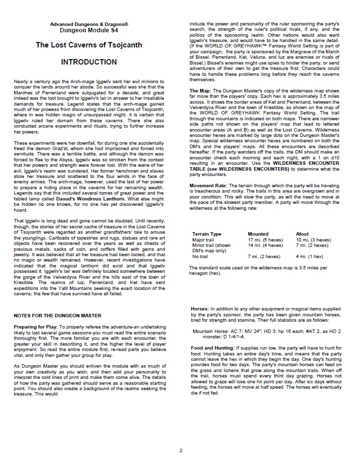 Not exactly a new module as the core dungeon is a reworking of the 1976 Lost Caverns of Tsojconth (with an o), it’s still a pretty impressive module. Split into two sections of thirty pages each, one being the adventure proper and the other with new monsters, spells and magical items to be found in the adventure, it does stand above other modules of the time. This is also because Gygax clearly knows the world of the setting really well, it’s his creation after all, and there is a good effort of contextualizing the adventure in terms of the wider history and geography.