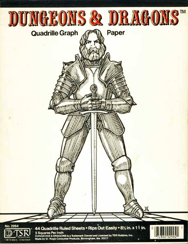 Not all D&D products are equally as fascinating, and here’s an example of an extremely humdrum item which is still interesting that it exists at all. What this is is a notebook of what, you ask? Well, Quadrille Graph Paper! 44 Sheets of 5 squares per inch paper which you could use for drawing out your dungeon or doodling or making a shopping list, the limit is your imagination!
