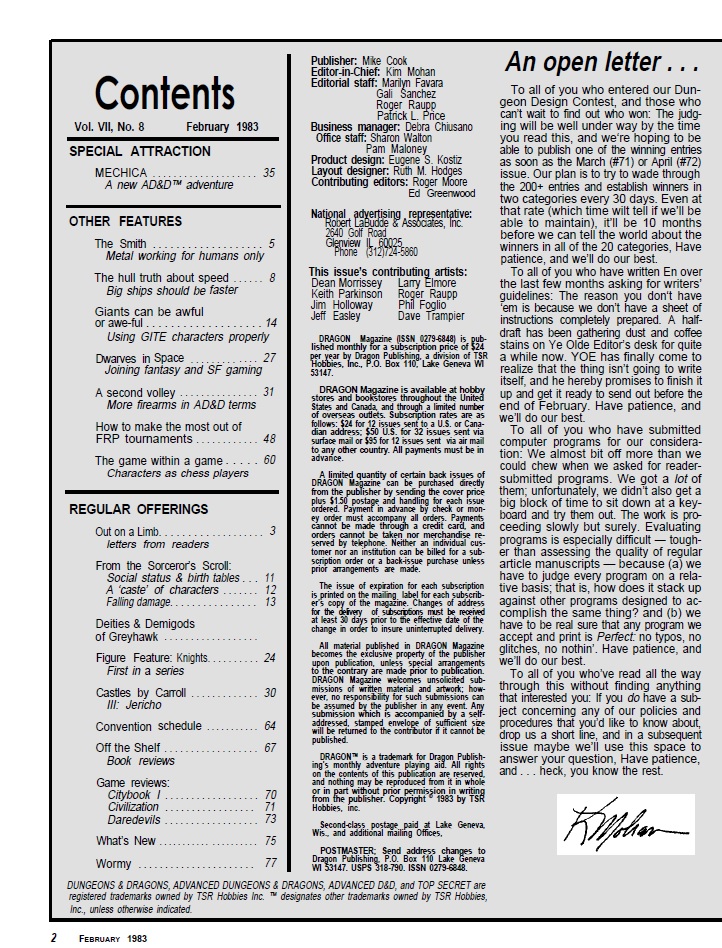 This issue of Dragon brings slightly less than usual AD&D material, with a couple of long articles for other games, but definitely enough content to keep fans happy and busy for the month.