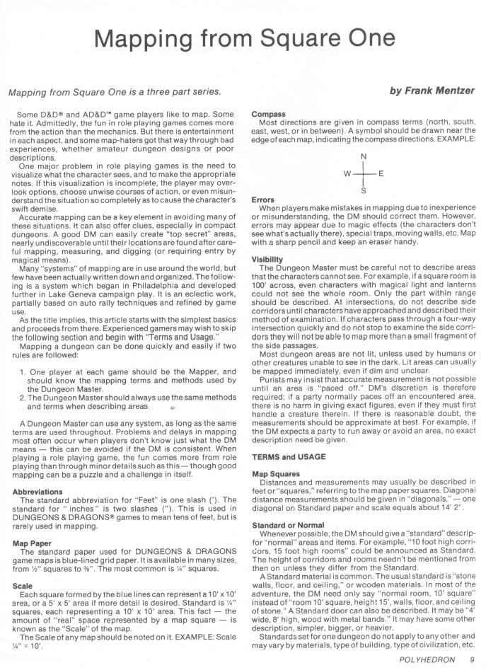 The 10th newsletter of the RPGA comes out with it’s regular coverage of various TSR games with a lot of AD&D and D&D content as well as some stuff which isn’t system specific. The first of these is Frank Mentzer’s guide to mapping dungeons in Mapping from Square One, directly followed by his Notes for the Dungeon Master column with more sage advice on how to deal with common DM problems, this time on how to face Gods with your party of players. Further on in the issue Mentzer brings us another instance of the Spelling Bee column, this time covering spell coordination between several players.