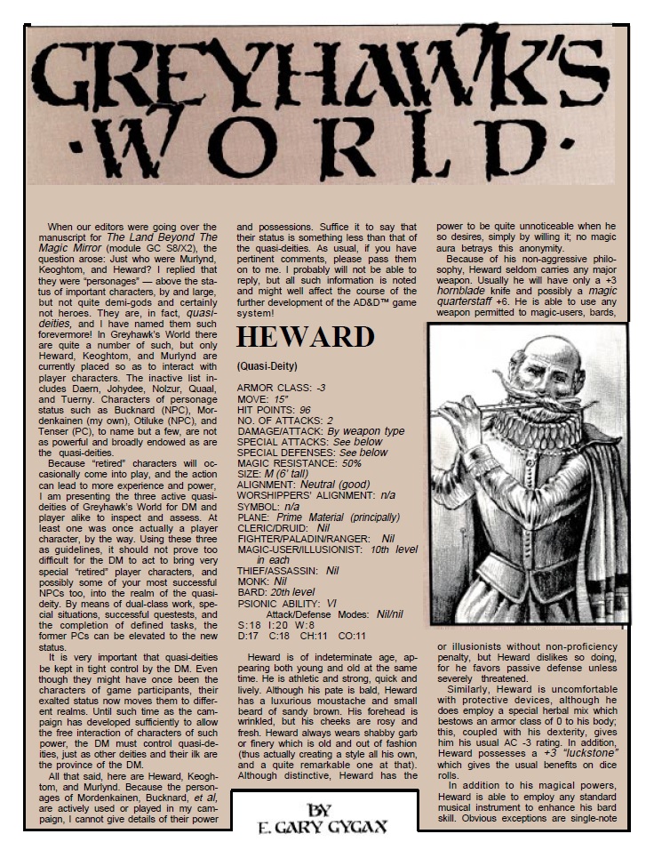 With a great Clyde Caldwell cover this is a particularly good issue for anyone interested in Greyhawk as it has a couple of good articles on heroes and gods of that specific universe, both written by Gygax, of course, one is simply the continuation of the recurring column covering the gods of Greyhawk, while another one expands that idea to cover some near godlike heroes of Oerth, which Gygax calls Quasi-Deities or Hero-Deities, basically the result of really high level player characters achieving godlike status.