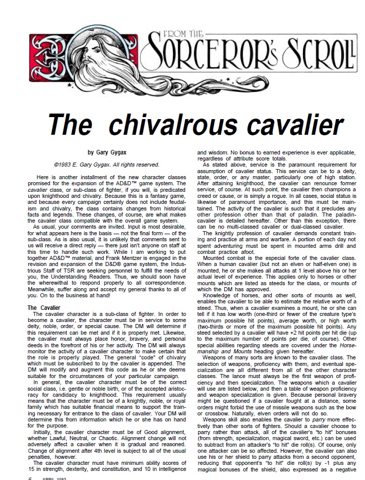 There are, of course, serious articles in the magazine as well and some important ones, as is the case of Gygax’s unveiling of a new sub-class: The Cavalier. In a 6 page article we get a whole new kind of Fighter class. Also new is the “Ecology of…” column, this time with the Ecology of the Piercer, with a fun article explaining how it works and an even better anatomic illustration of the Piercer’s insides.