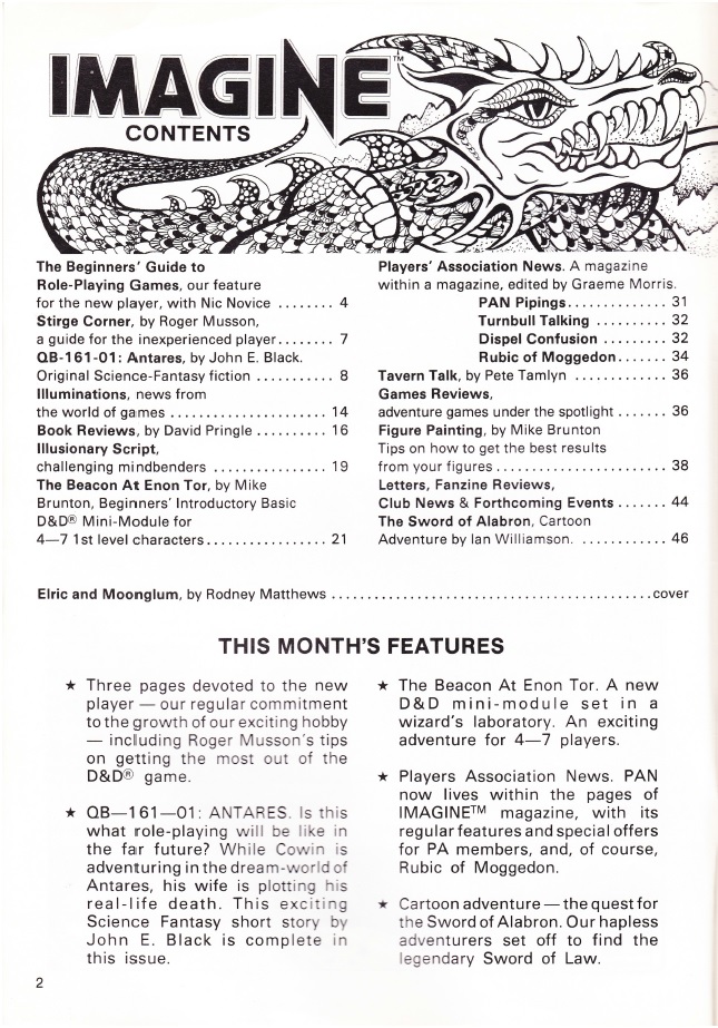 Much less well known than the American Dragon magazine, Imagine was the TSR UK publication. Lasting until 1985 and going for only 30 issues plus a special issue it wasn’t particularly successful, but it still published plenty of original material and most of it on D&D and AD&D, so it’s very much worth covering here.