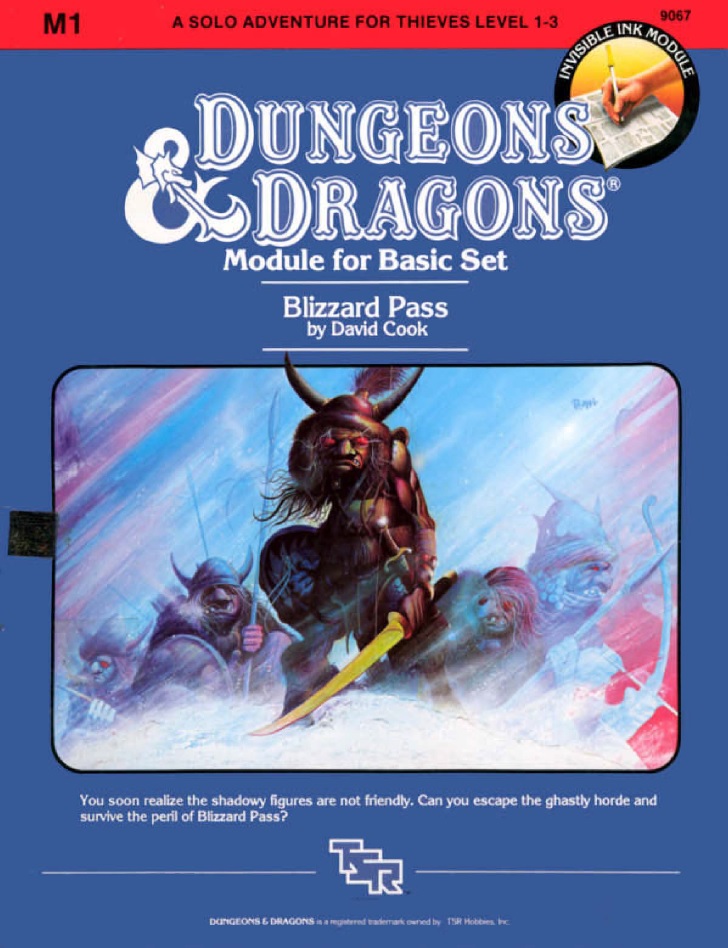 And now for something completely different. Well, not completely different, but the joining of two different concepts that were already being explored by TSR into something new. By bringing together the Endless Quest style of choose your own path books with the regular D&D modules we get this MSOLO series. Originally with the code M1, further reprints would publish Blizzard Pass as MSOLO1, to avoid confusion, as another group of modules took the letter M (1985’s Into the Maelstrom would be the official M1).