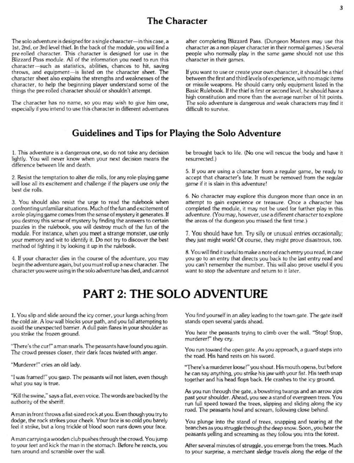 So what we get here is a module sized publication with plenty of numbered empty text boxes and an invisible ink pen, as you choose your path you are supposed to highlight the selected box with the special pen included in order to read the next bit of the story. The story here is pretty simple, you are a level 1 thief who has to traverse a snowy pass after being wrongfully accused of murder and eventually you get captured by monsters and get to explore some caves with prisoners that you need to free and who will become your allies.