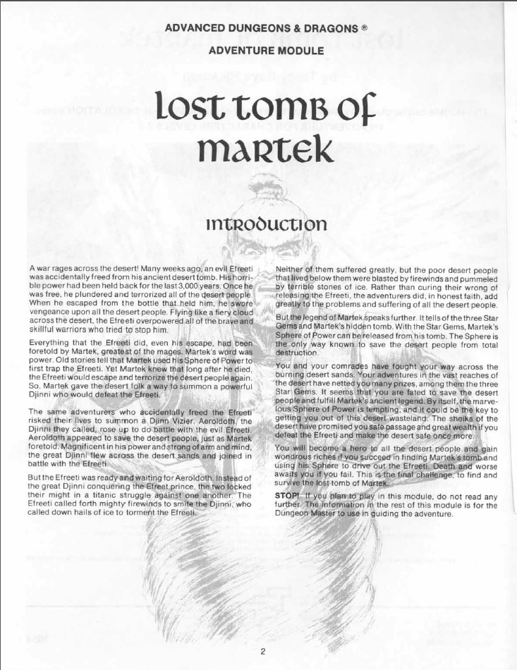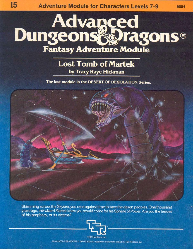 Although there are some really interesting things to see inside in the tomb of Martek, including places where time has stopped, a strange garden where competing tribes live, and another desert in a pocket dimension, the most interesting thing about the module is right at the start of it. An immense expanse of mirrored glass where the sky and the ground become one, the Skysea, that players must traverse on a skate boat as the glass is scalding hot because of the reflection of the sunlight. That’s a great concept that is an all time classic. Unfortunately by the end the module is really anticlimactic as Martek is the one that fixes everything off screen with the players being robbed of a showdown with the Efreet.