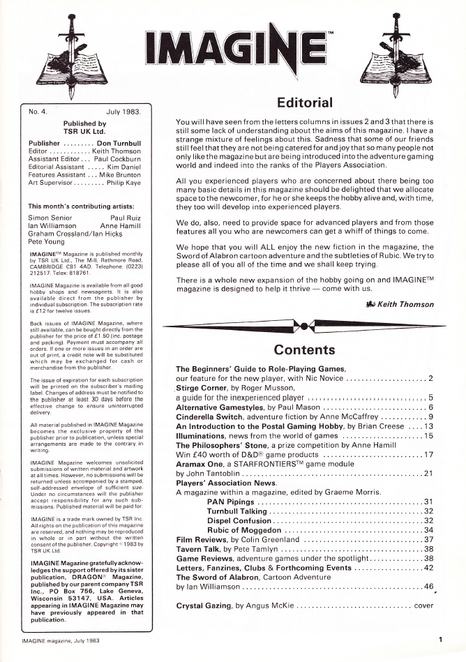 With a pretty great cover that point to the Star Frontiers content inside, the fourth issue of Imagine is pretty similar to previous issues, and although I know this was for a UK audience which would have some difficulty getting Dragon as that would be pretty expensive to import, there is a feeling that Imagine does need to up its game.
