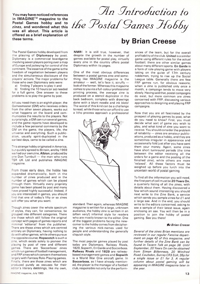 Part of the strength of the magazine, though, is their fiction selection, less centred around Sword and Sorcery in the way Dragon’s published fiction was, it gives us a short story by Anne McCaffrey, a pretty big get for such a small and new magazine. Other than that, there are some good articles on other used of Role Playing (such as psychological therapy and educational uses) and another about Postal Gaming, particularly useful if you don’t have any other players around you, which would often be the case in the UK, where there were less players, and there’s also a fun D&D based puzzle game.