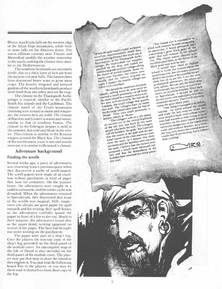 In terms of the content of the module itself, it also gets tightened up, with a better lore and wilderness section and rebalancing. It’s essentially the same adventure, but some of the problems which were present in the 1981 version were fixed. This version fleshes out the island natives into real personalities with social structure, individual characters and alternate paths to victory which do not involve the wholesale genocide of a native population… which is a good thing. Now you get experience by setting up trade routes to the island, for example.