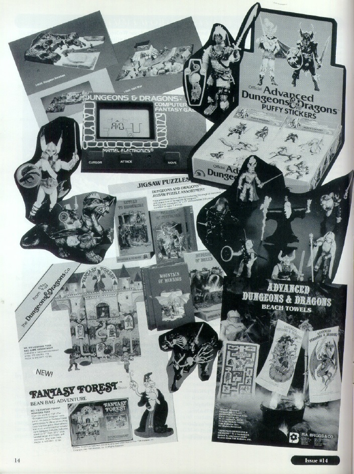 There’s also a pretty useful page for completists like yours truly with a list of TSR licensed products and respective manufacturers, so if you didn’t know that there were AD&D Wood Crafts, Wood Burning and Candle Making Kits produced by Natural Science Industries, now you do!