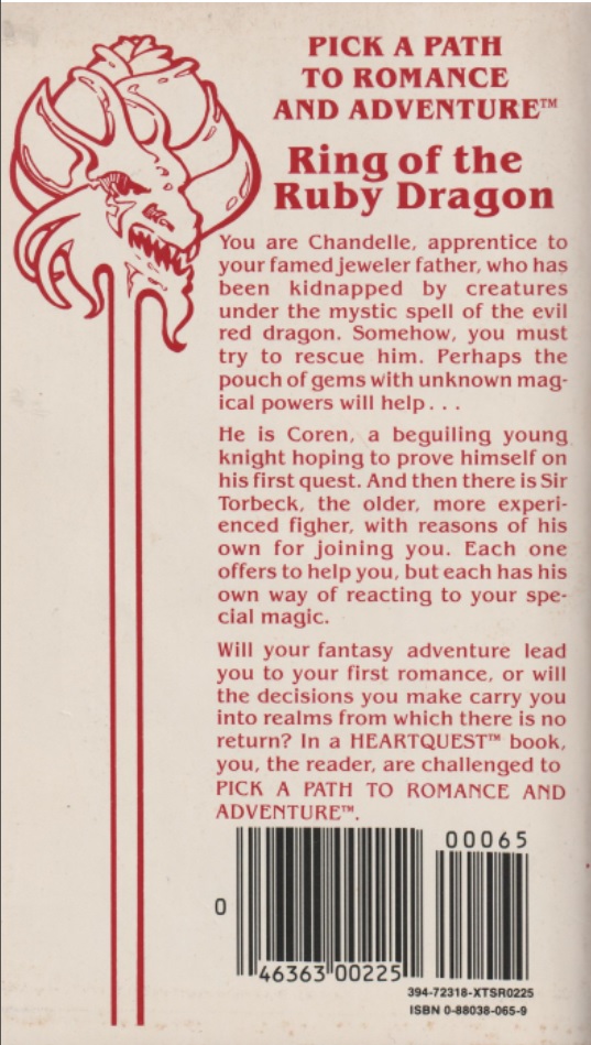 By 1983 we already had the ongoing Endless Quest series of interactive fiction, choose your own adventure style books, but by the end of the year, in November, the first four volumes of HeartQuest would come out, with two more coming out in 1984. This is a new, and short-lived, series of D&D interactive fiction targeting a different demographic from the Endless Quest books.