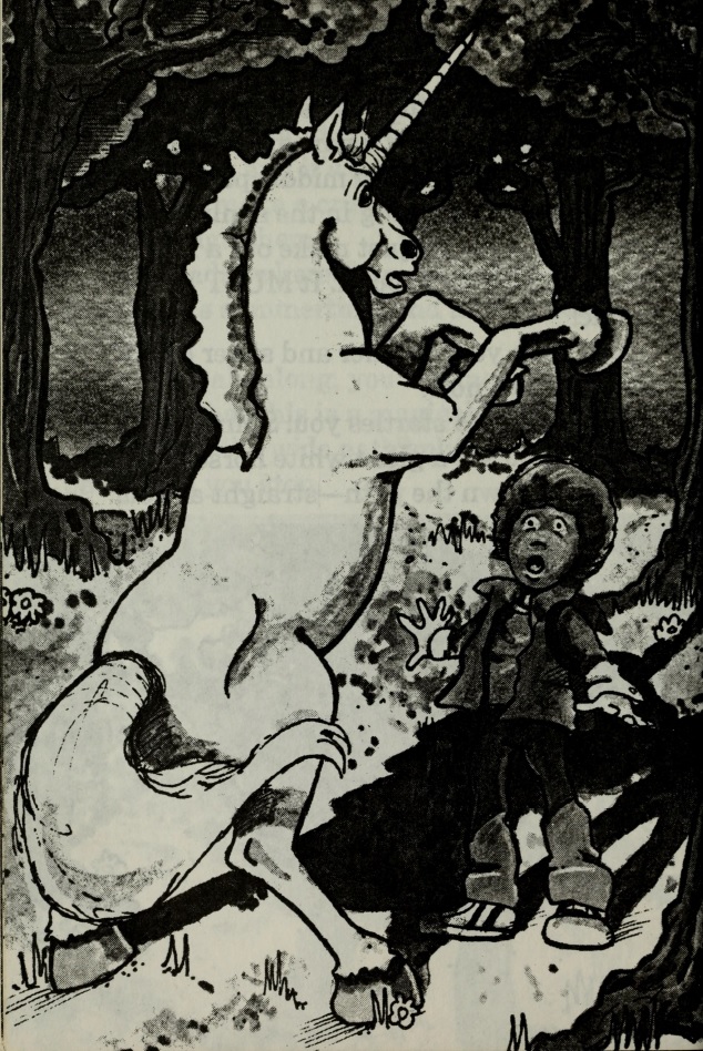 You can tell from the cover which has a call back to the TV series, that it is squarely aimed at the same audience as the cartoons. Shorter than the Endless Quests, more profusely illustrated, and with simpler plots it has a good Jeff Easley cover, but I’m not a particular fan of the Mario Macari Jr. illustrations inside. Storywise the book is set in the present time, but as the main character gets lost in the woods behind his house, he is transported to a recognizably D&D fantasy universe for some adventures with Unicorns and Dragons and Knights… oh my.