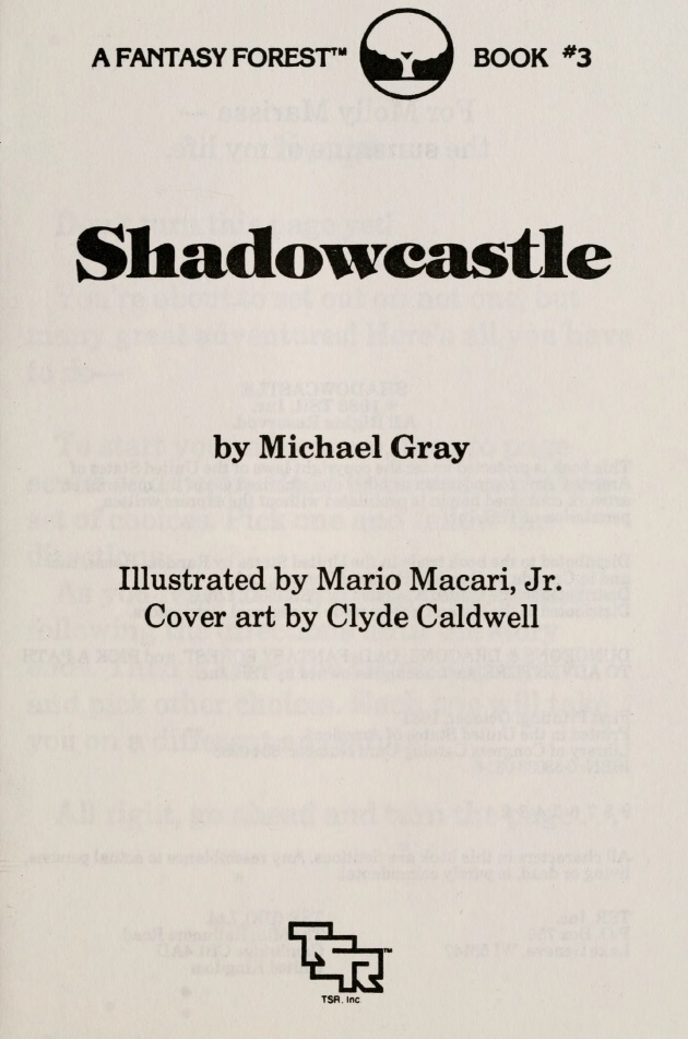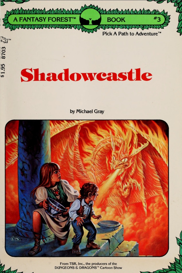 Another post of catching up to the Fantasy Forest series that fell by the wayside while doing this project and we get to Shadowcastle. An interesting book in this kid series for a couple of reasons. For one it has an explicitly female hero, Molly which was pretty uncommon for these TSR gamebooks, with the exception of the HeartQuest series which was directed at young women.