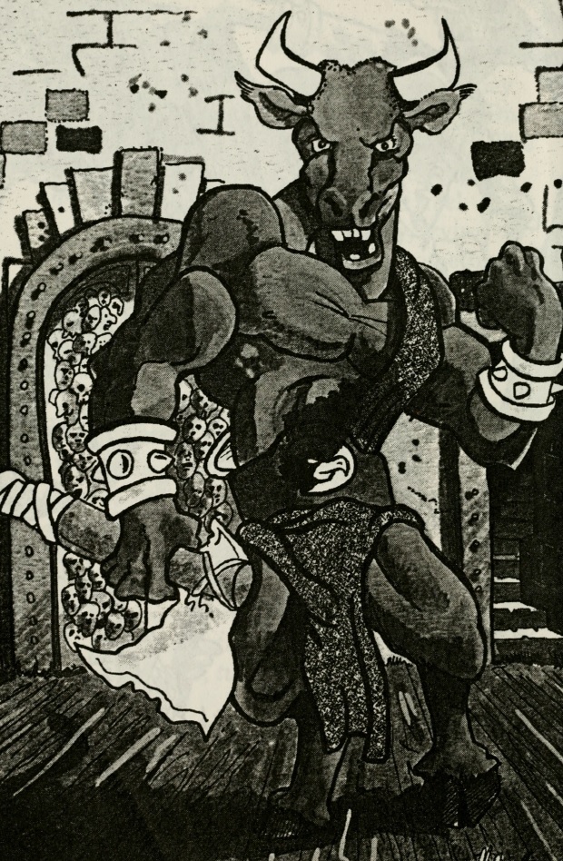 In terms of art we get a really good Clyde Caldwell cover, but then are really let down by the Mario Macari Jr. art on the inside, which feels very out of place, but with a couple of drawings that get to that “so bad it’s good” point, the golem and the minotaur being two of my favorites.