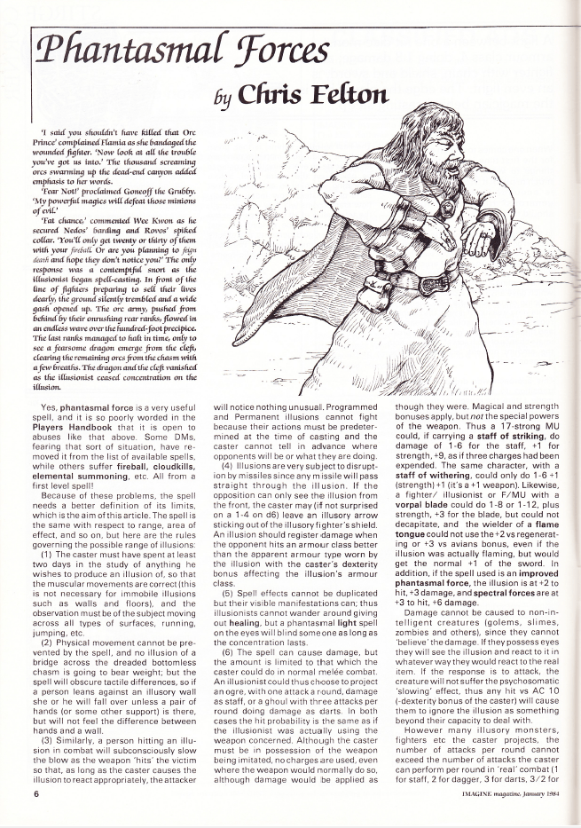 This issue consists of the usual columns, plus an article on Phantasmal Forces, an AD&D adventure as well as rules to include Snooker in AD&D. Could you get any Britisher?