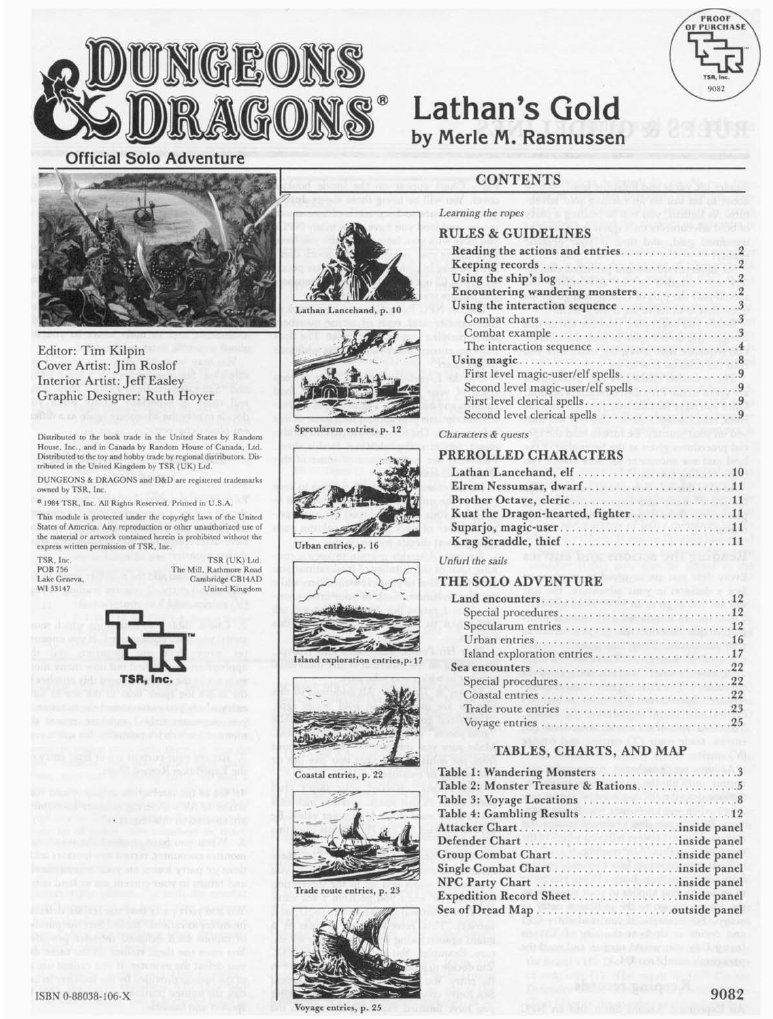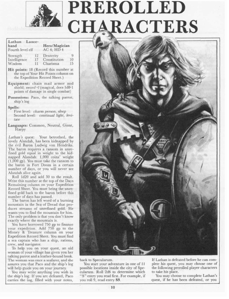 Five other characters are available with different quests which you can also do, or use to replace Lathan if it all goes downhill for him. Also worth noting is the excellent interior art by Jeff Easley, which I find better than Jim Rossof’s cover. I love Roslof, but this really isn’t one of his best efforts.
