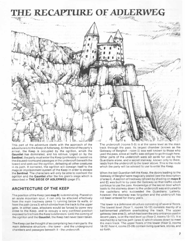 The direct continuation of UK2: The Sentinel, this is a Greyhawk module that makes little sense on its own, even though there, as usual, instructions for giving it a quick start to get the players up to speed with what is going on. Basically doing a kind of quick version of UK2, by making the characters find the sentinel, the good-aligned sentient glove that hates the evil-aligned Gauntlet.