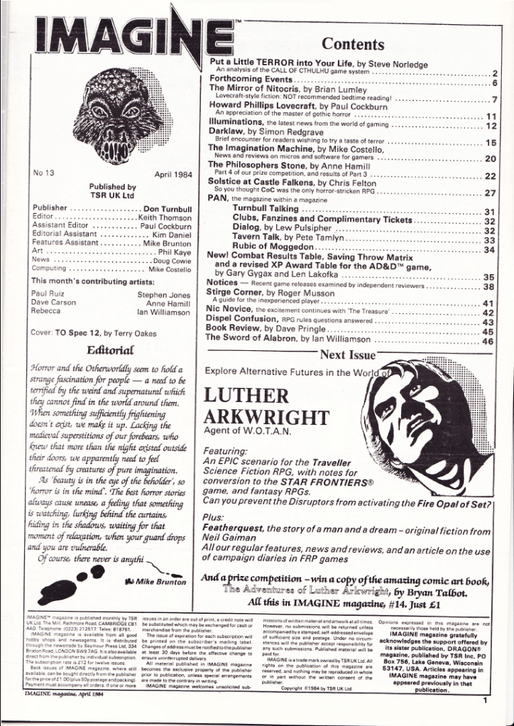 This month the official TSR UK publication feels a lot like an official Chaosium publication. This isn’t necessarily a bad thing, mind, but it kind of makes most of the magazine fall outside the remit of this page.