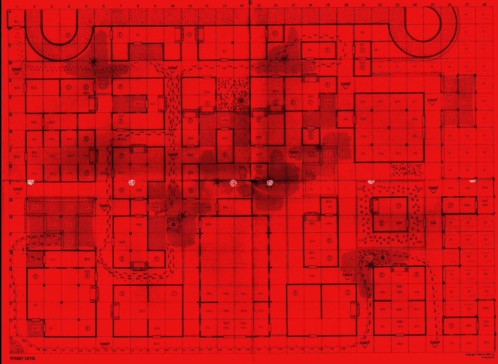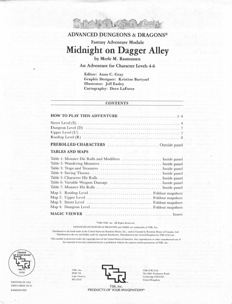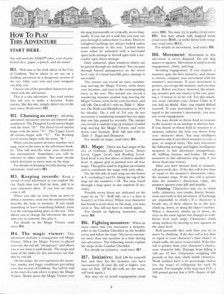 Merle Rasmussen has quickly become TSR’s go to guy for solo player modules, and this is another example of those. TSR is still trying to figure out a way to make these modules work and be fun to play and this time they are using a Magic Viewer, which has very little magic to it, being essentially a red piece of cellophane in a paper frame which will filter out the red noise from the text and maps printed on the module, allowing the player to see what’s under it.