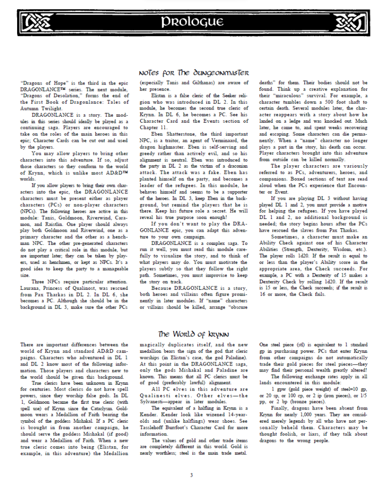 The third Dragonlance module is also a bit of a surprise if you are mainly familiar with the world through the novels. Although set during the events of Dragons of Autumn Twilight, the truth is that many of the events here are not adapted in that novel. In fact you would have to wait 23 years until 2007 for some of the events here to be adapted in novel form in Dragons of the Dwarven Depths.