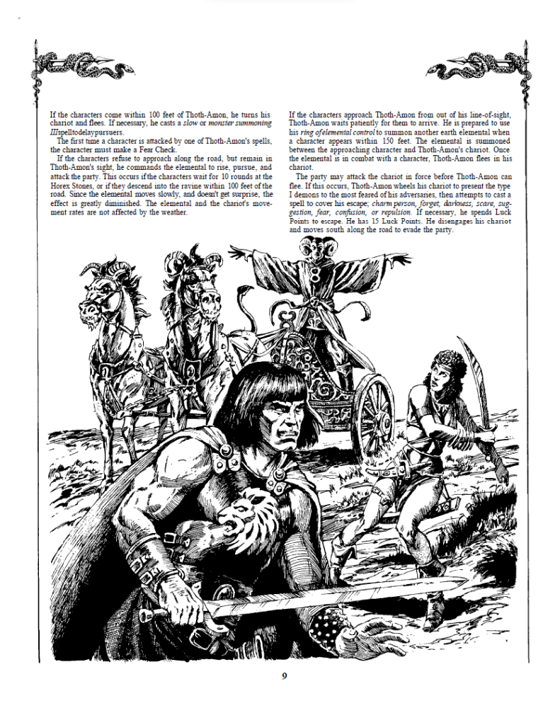 Also adding to this feel, is the fact that you get to go after and eventually fight one of the great iconic villains of the Conan stories, the wizard Thoth-Amon, going through a bunch of “episodes”, kind of one-shot adventures, to get to him. On the way you get to fight plenty of snake-themed enemies, but the story is unfortunately a bit railroady and makes little sense if the party is not using the pre-generated characters of Conan and Friends.