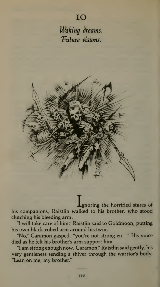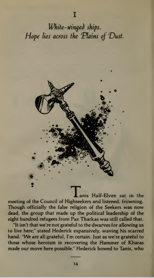 If the first volume ended just as the corresponding AD&D game modules were coming out, this volume jumps to the future after the last published modules and has our characters start out the novel in Winter, on a ship carrying a dragon orb after returning the Hammer of Kharas to Thorbardin. These events actually happened between the novels and if you want a detailed account of them you have to either read the already released adventure modules or wait a bunch of years for a short story collection that will fill in the gaps.