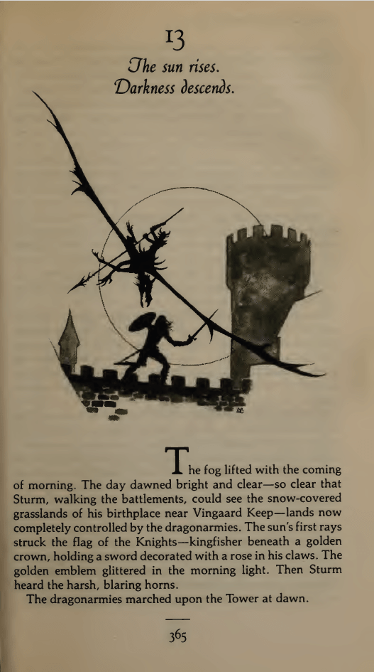 The second volume in the Dragonlance chronicles trilogy, and the second book set in the Dragonlance universe as a whole, this one comes out just a few months after late-1984’s Dragons of Autumn Twilight. These are coming out so fast (the third volume also comes out this year) that there is no pretence of these following the adventure modules anymore.