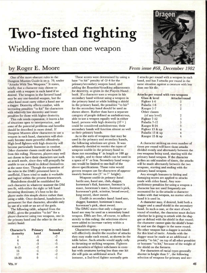 Instead of having to dig through piles of back issues of Dragon (if you were even luck enough to have started collecting them far enough back in time to have the relevant article) in order to find rules for a certain class or rules for two-hand fighting, or handling your castle, you could just refer to a handy little “Best Of” which neatly set out some of the more useful bits printed in the magazine over the years.