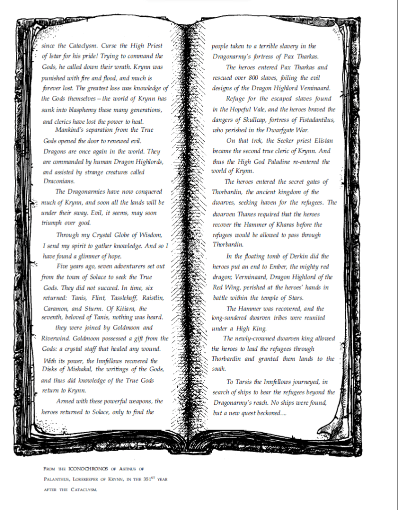 After a short hiatus separating the first and second volume of the Dragonlance modules, we get the first module which came out in 1985. Coming out a month after the Dragons of Winter Night novel, this pretty much coincides with the first section of that novel. By this time the novels had overtaken the modules in the publication schedule, and this could create spoiler problems if you had a party of players who were also avid readers.