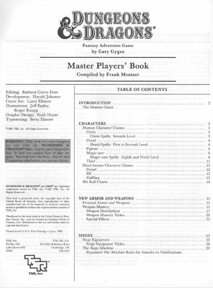 Divided into two sections, one for players and another for DMs, the set introduces new subclasses as well as arms and armour, including rules for sieges and siege weapons. If in the Companion rule you were expected to own a small kingdom, by the time you come to be a Master you should be able to achieve small empires.