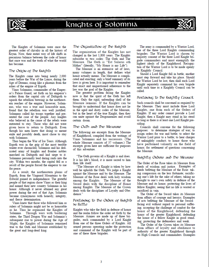 This module is also, due to its setting, really heavy on the whole Knights of Solamnia lore, including a section before the adventure with two pages about the workings and structure of the order which will be of great use for any DM trying to bring the Solamnic fortress to life.