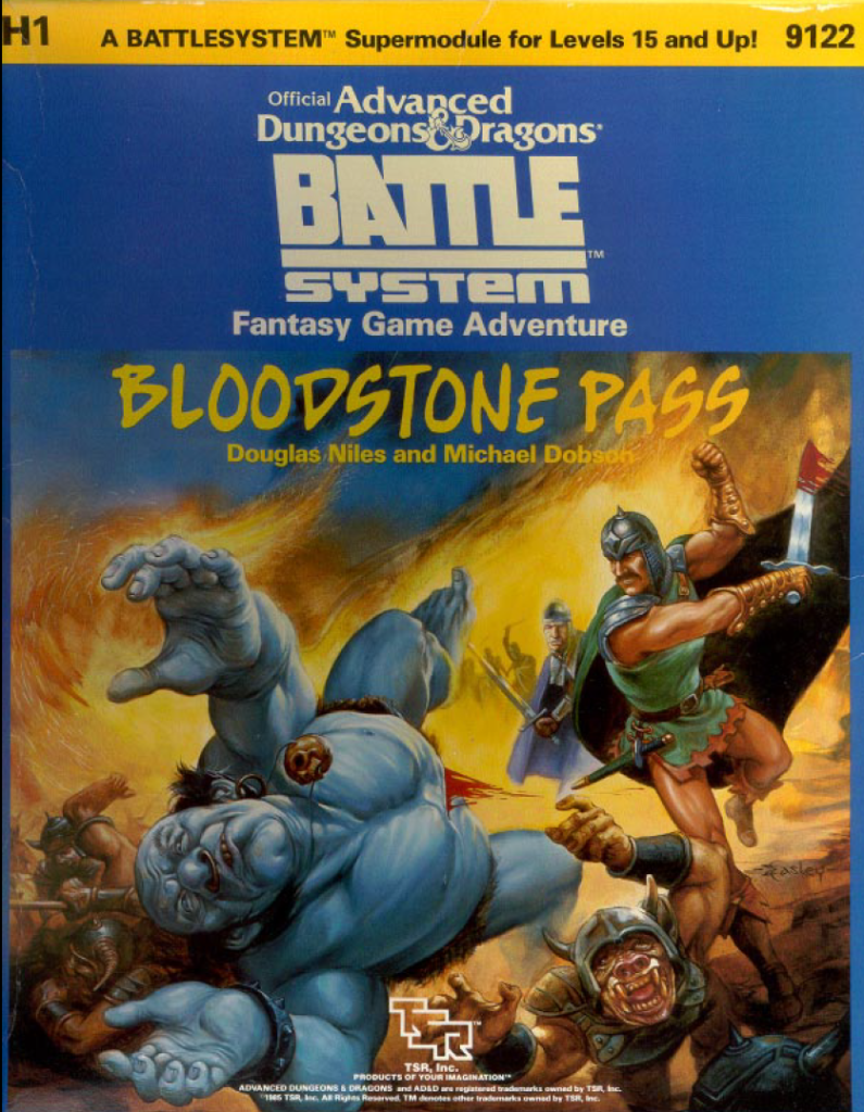 And now for something completely different. Here we are with a box set module! The first of its kind it’s also a standalone introduction to the Battlesystem wargaming rules. In fact Battlesystem was named Bloodstone Pass during development, only later getting its final name as it was thought that the name didn’t do a good job of conveying the fact that this was a new battle system for use of armies in the context of AD&D.