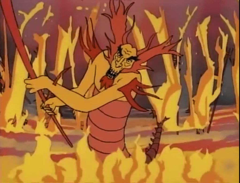 Evil comes like a great column of fire consuming everything in its way and the powers of Venger and Dungeon Master are diminished. They must go down into the heart of the world to recover their powers and join together to defeat the Evil. The ending is a bit anticlimactic, but maybe it’s setting us up for something (if they get the chance to do it). Anyway, fun episode!