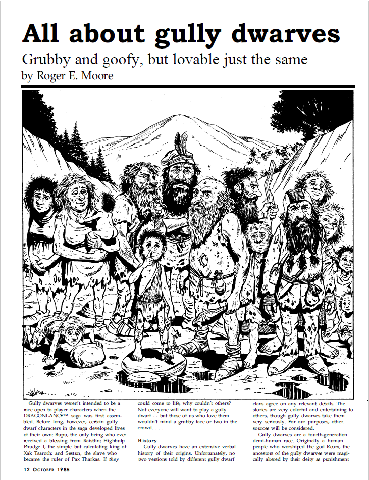 Other cool articles include a long one on Dragonlance’s Gully Dwarves, with loads of info on those disgusting but also kind of cute beings, another article by Ed Greenwood on magical item this time bringing us Nine magical Wands from the Forgotten Realms and finally an article on how to populate your campaign worlds. Good stuff.