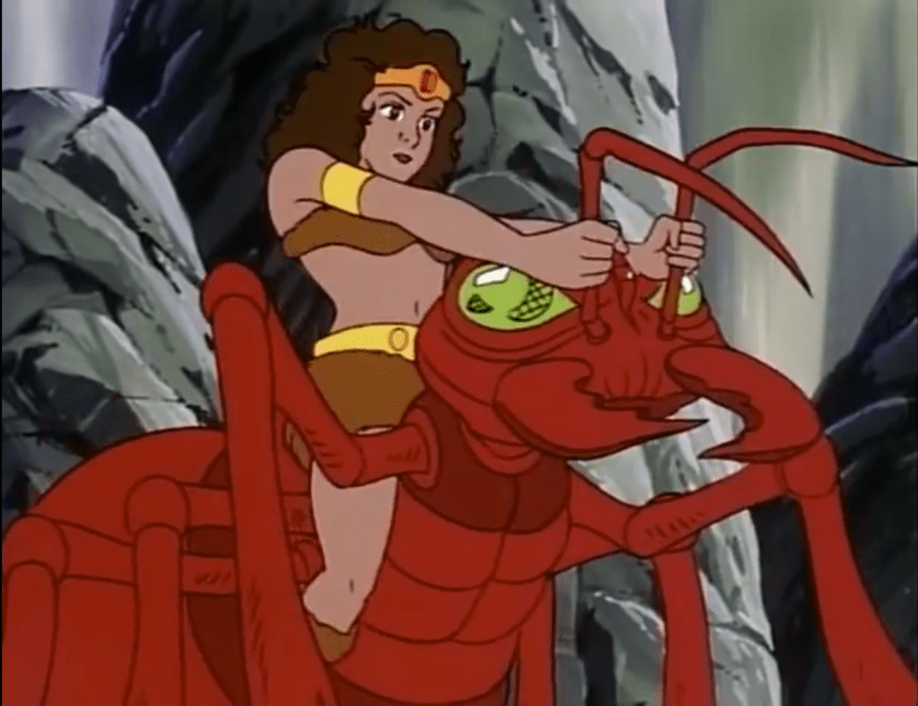 In this episode we start out with the kids having some watery fun as they swim around in their underwear. However, the Dungeon Master, like the little creep that he is, is never far away and he shows up around the kids and tells them (again) that he knows a way back to their world. Eric has the right idea and starts moving away from the old man, but eventually Eric messes up, as usual, and awakes some giant ants.