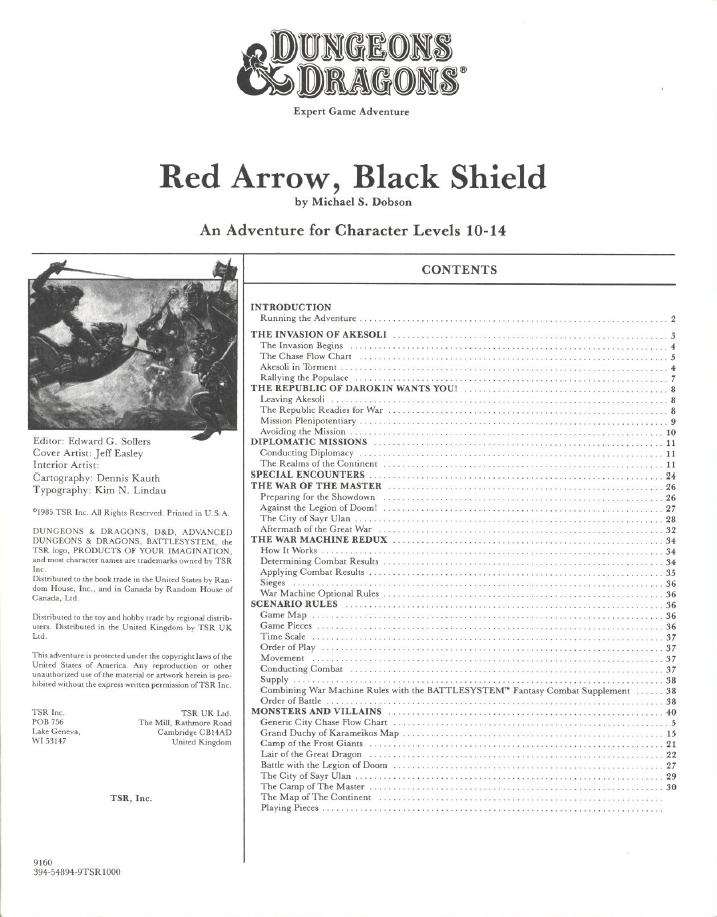 A module that uses both the Expert Dungeons & Dragons Rules and the Battlesystem tabletop wargaming rules, this is a kind of loose follow up to the adventures X4 and X5, Master of the Desert Nomads and Temple of Death respectively, as the master of the nomads returns as the big bad and the players take the lead in the war against him.